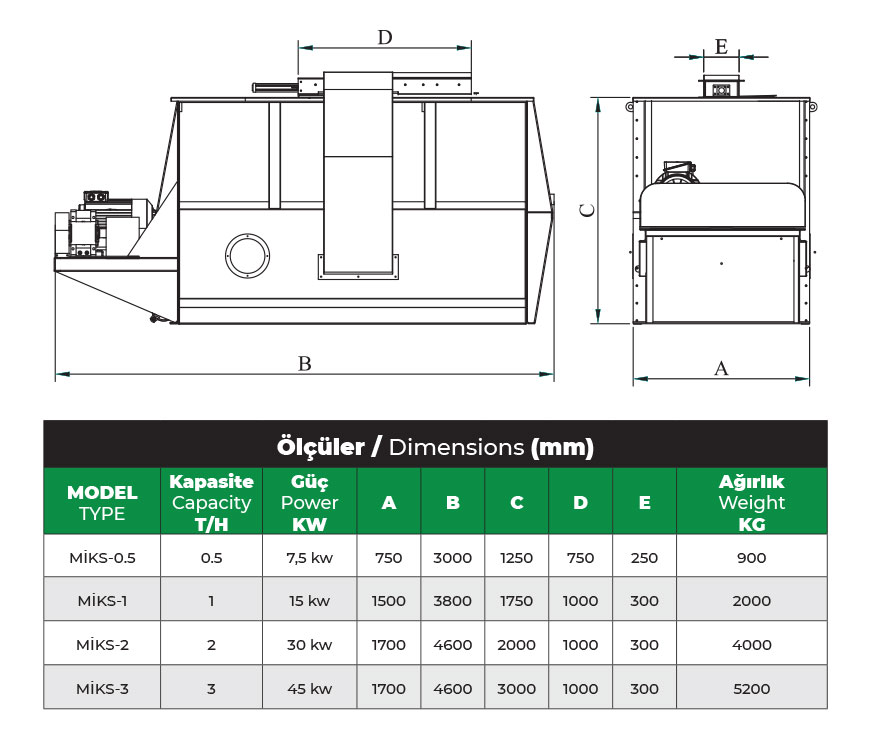 Serbest akışlı kuru katılarınızı saatte 20 karıştırma döngüsünde işleyebilir. Hijyenik tasarım ve kolay bakım, onu hayvan yemi ve diğer birçok malzeme işleme endüstrisi için verimli bir seçim haline getirir.